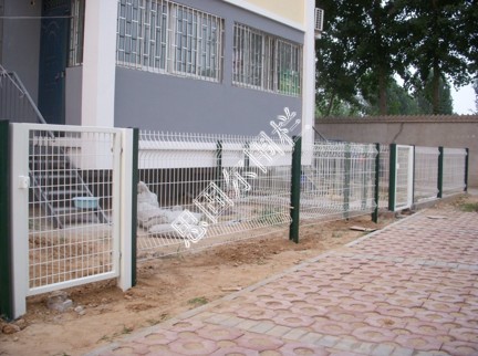 鐵絲網小區圍欄是由排焊機對鐵絲焊接成型,在經過折彎、表面處理,立柱制作,安裝后形成。