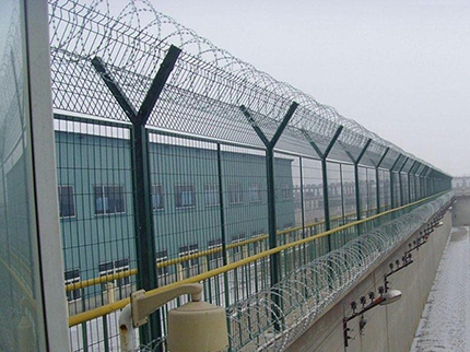 監獄護欄網又稱作“Y型安全防御護網”監獄鋼網墻,是由V型支架立柱,加強型焊接片網,安全防盜連接件和熱鍍鋅刀片刺籠組成強度和安全防御性級別很高,近年來,被廣泛應用在監獄,機場,軍事基地等高安全場所。
